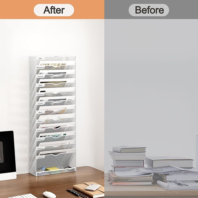- Increased Storage Space: Measuring 12.6 x 3.98 x 31.97 inch, the wall file organizer's tall and narrow design maximizes vertical space, making it ideal for small spaces