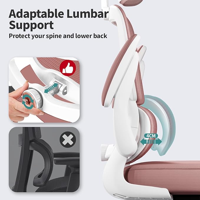 TRALT Office Chair Ergonomic Desk Chair, 330 LBS Home Mesh Office Desk Chairs with Wheels, Comfortable Gaming Chair, High Back Office Chair for Long Hours (Pink)