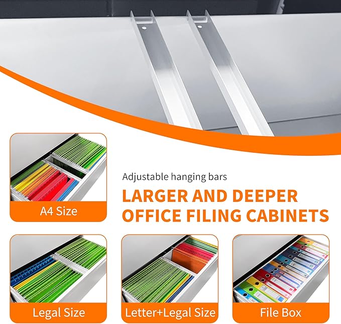 - 【Unique Design】 The steel file cabinet features precision ball bearing full suspension slides, ensuring silent and smooth opening and closing of the drawers. With a full extension drawer design and humanized handles, this locking cabinet offers convenient and effortless functionality.