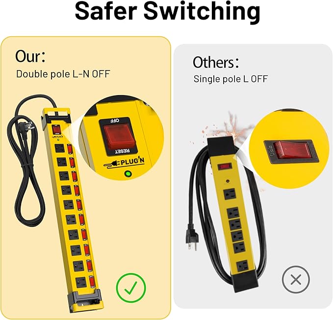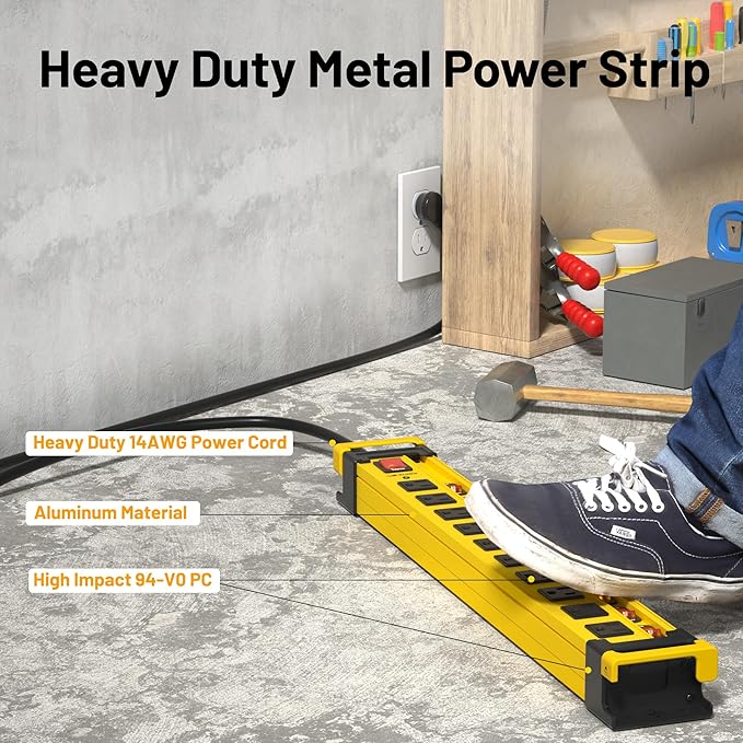- Large Power Strip--AC 15A 125V 60HZ 1875W,Universal power strip is rugged and perfect for charging a wide range of power tools in workshop,garage,commercial,shop,home,kitchen,factory,workbench,industrial,under cabinet,warehouse and office