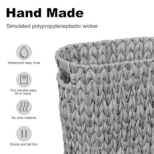 - Thoughtful for Every Space🎴Effortlessly integrate this bathroom garbage can into your bathroom, vanity, bedroom, RV, dorm, or office. Its slim and compact design ensures easy installation, saving valuable space while offering a touch of boho chic to your surroundings.Enhance your space with this nicely crafted, tall wicker basket – not just a trash can, but a decorative piece that fits perfectly into your lifestyle!