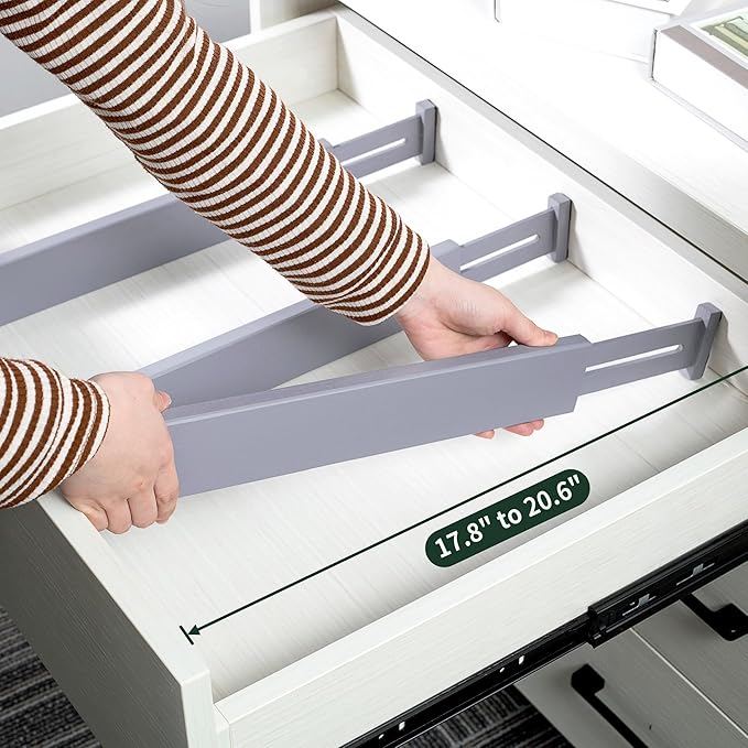 - Easy Installation & Removal: Expandable drawer divider has a built in spring to keep them in place and easy adjustment to meet your changing needs. Recommended for sturdy drawer