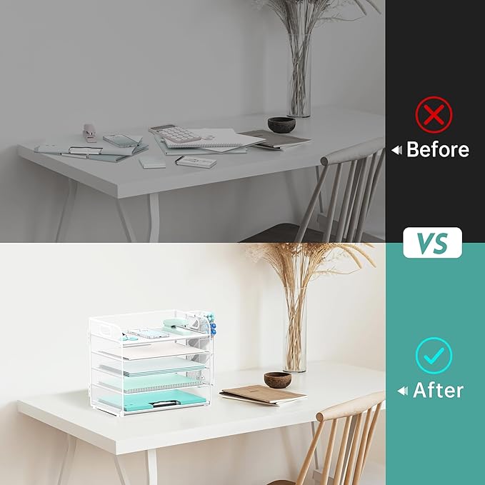 - [5 Tier Large Capacity] Upgraded SUPEASY white desk organizer is 4+1 tier paper tray organizer. This paper organizer has 4 detachable trays which is perfect for holding letters, A4 paper, books, bills, magazines, mails, folders, notebooks and so on. The desk organizers can fully take advantage of your vertical space and keep your desktop clear and tidy.