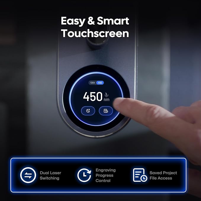 - Highest Level of Security: A built-in Hall sensor automatically pauses the project work, once the door is opened, and resumes the work when the door is closed. So you can work safely and showcase your engraving with a peace of mind. With a built-in smoke exhaustion fan, the protective cover helps better extract the unpleasant smoke and smell generated during the laser engraving