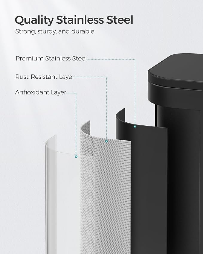 - [Durable and Stable] Made from robust stainless steel, this trash bin is resistant to rust, dirt, and is easy to clean. The base is equipped with non-slip pads to enhance stability, making it difficult for pets to tip it over