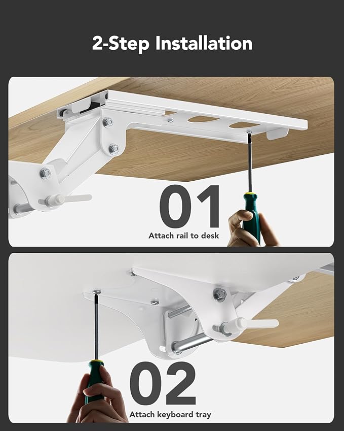 - Large & Perfect Size - Full size keyboard drawer with a 25” x 9.84” , surface fit all sizes of the keyboard, mouse, and all your extra knick-knacks .We also included a wrist rest to improve wrist comfort. (Item weight: 10lbs)