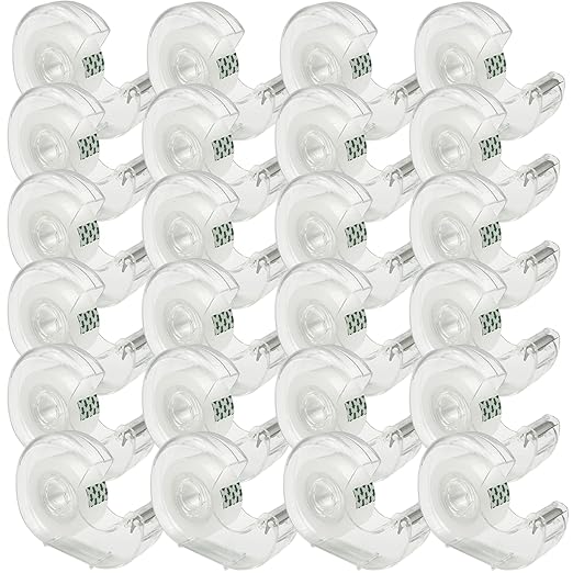 - WHAT YOU GET: 24 Tape Cutters and 16 Rolls of Tape (Measures 0.75 inches x 720 inches with 1 inch cores).