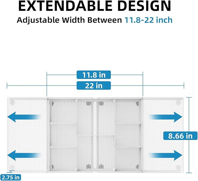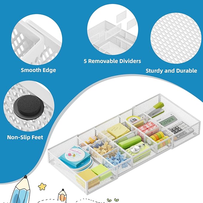 Marbrasse Expandable Desk Drawer Organizer, Mesh Drawer Organizer Tray with 10 Adjustable Compartments, Desk Organizers and Accessories for Office Supplies (Longer Expandable Drawer Organizer-W)