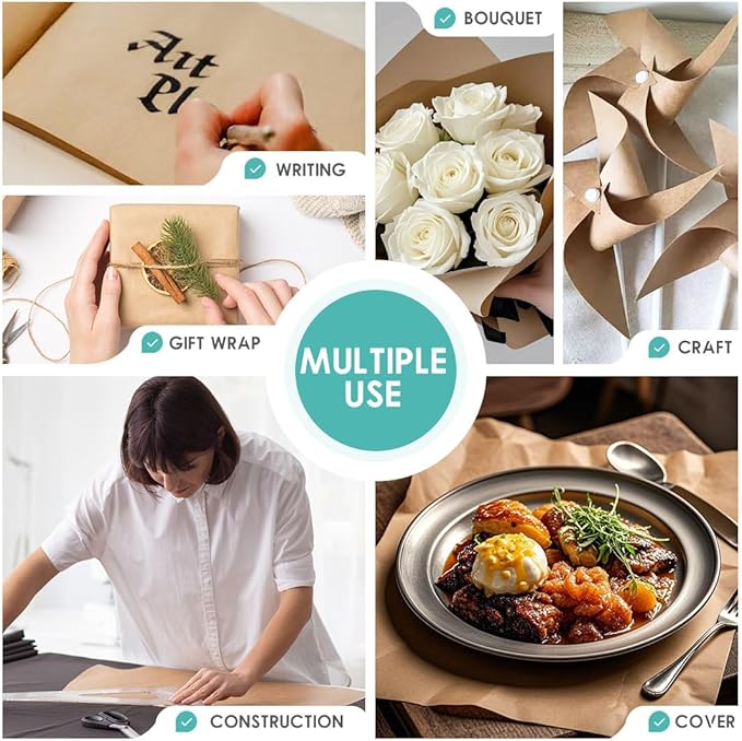 - 【VERSATILE USAGE】This attractive color kraft paper is perfect for elegant and stylish gift wrapping, and is also an ideal choice for those who prefer environmental-friendly packaging. Additionally, it can be used for various Art & DIY projects, such as decorations, table runners, and bulletin boards. As a covering, it protects against stains, paints, and dust without damaging your cherished items.
