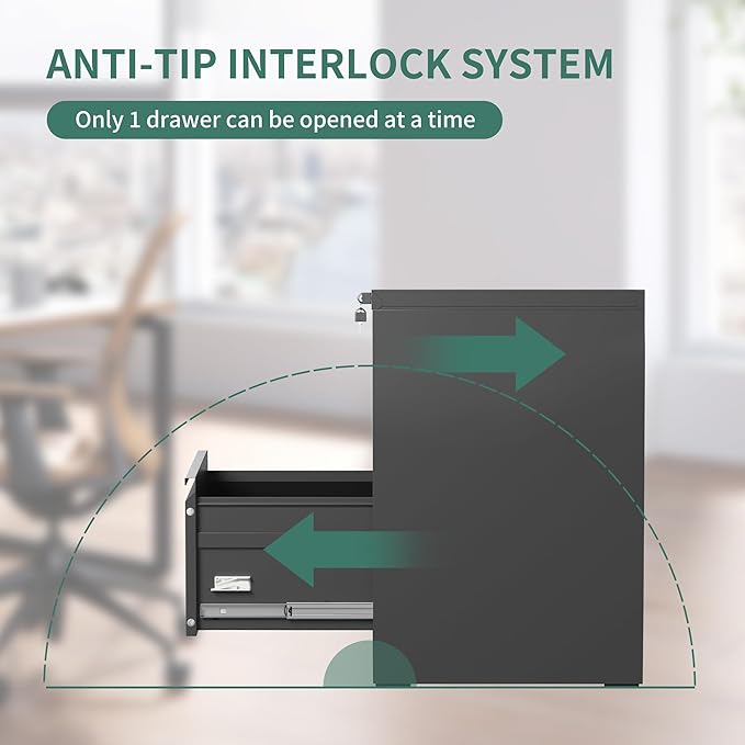 - 【HIGH SECURITY】This filing cabinets for home office with lock has one lock equipped with 2 keys securing all your files,you can lock all the drawers at the same time,with an anti-tilting mechanism, when one drawer of the narrow file cabinet is opened, the interlocking system prevents the other drawer from opening.