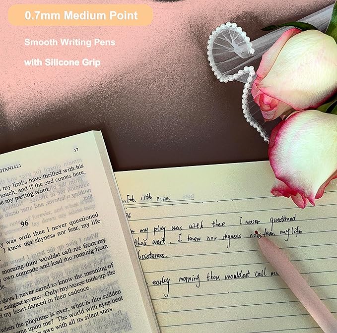 - Aesthetic Pen: The 5-pack extra fine point pens are super cute and very aesthetically pleasing. You can clip the ballpoint pens to the book or the bag, convenient to carry and prevent loss. The roll ball on the clip moves around (a nice fidget) and is great for stress!