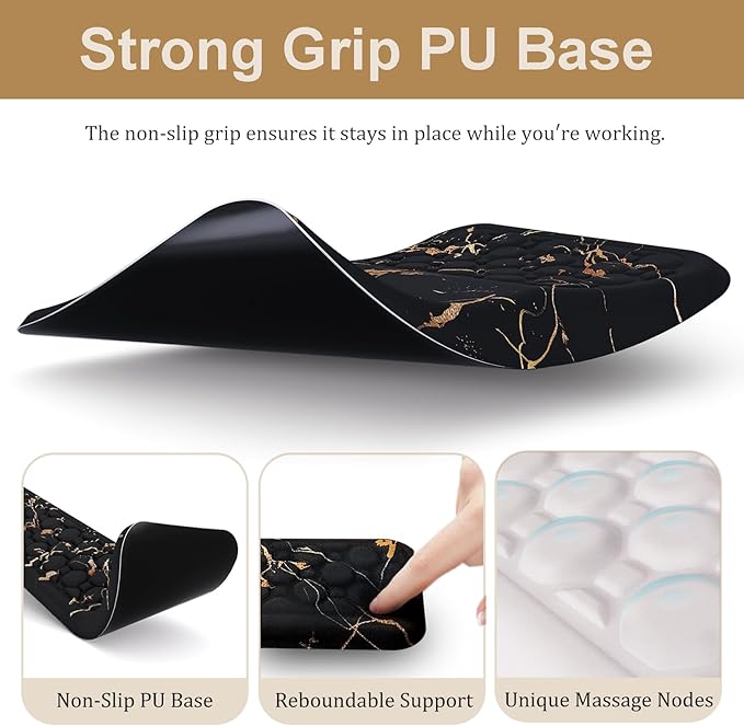 - 【Anti-Slip PU Base】Our mouse pad and keyboard wrist rest have an anti-slip PU base that ensures stability on any surface, unlike rubber bases. Whether you're working at a desk, on a bed, or even on a couch, the pad will stay firmly in place, allowing you to work comfortably and efficiently.