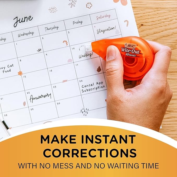 - BIC WHITE OUT - Instantly write or type your corrections with this clean straight line white correction tape, which requires no dry time and won’t bleed or drip.