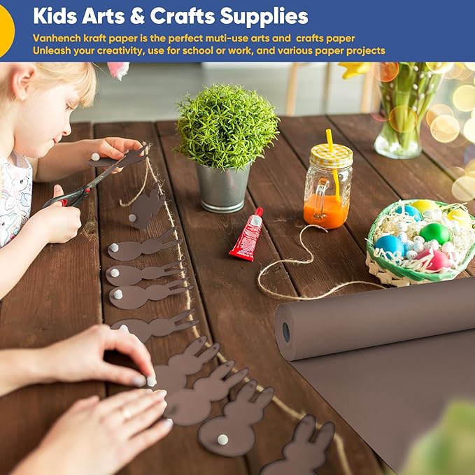 - Thick and Durable Paper. Made with industrial grade heavy duty paper, Vanhench wrapping paper roll is sturdy and durable, does not rip or tear easily. The kraft paper roll can be used as parcel packing paper, great protection for shipping, packing and moving, better alternative to newsprint paper sheets and construction paper for arts and crafts paper. Meets your needs for everyday use.