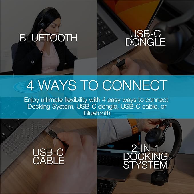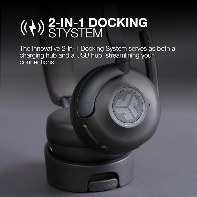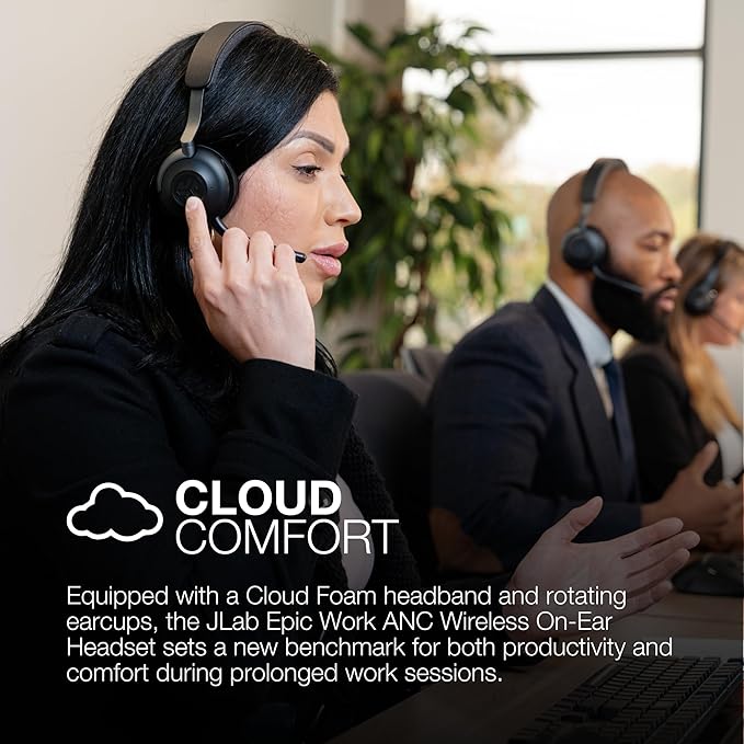 JLab Epic Work Wireless Headset with Microphone, Smart Active Noise Cancellation, Charging Hub, 90+ Playtime, Quick Mute, Bluetooth Headphones, Multipoint Connect, PC, Laptop, Mobile, (1 Pack)