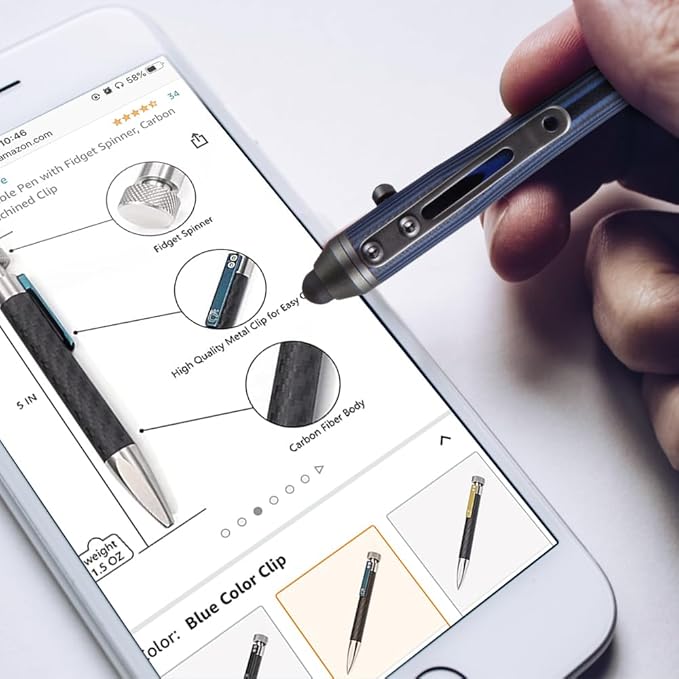 Cool Hand 5.7'' Bolt Action Pens, EDC Ballpoint Ink Refillable, Stylus for Touch Screen, G10 Body w/Pocket Clip, Ergonomic Grip, with a Free Refill, 5374-N