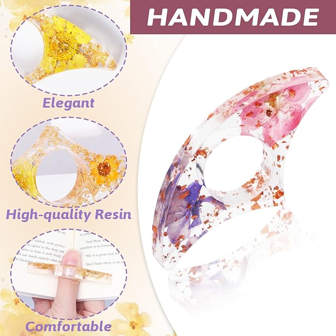 - 【Premium Material】These thumb book page holder are made of true pressed flower and quality resin material, brightly colored and vivid, durable and reliable, odorless, light weight, can be carried around and will serve you for a long time.