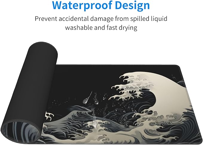 Stylish Japanese Ukiyo-e Style White and Black Ocean Wave Art Print Themed Mouse Pad 31.5 x 12 Inch, Anti-Slip Rubber Base, Ideal for Computer, Laptop, Office & Home Use