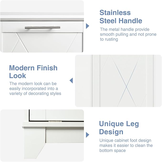 - Space-Saving and Concealment: Maximize your space with our hidden trash can cabinet that not only conceals your trash can but also saves valuable floor space. The discreet appearance seamlessly integrates into your home decor, providing a sleek and organized look while keeping your waste out of sight