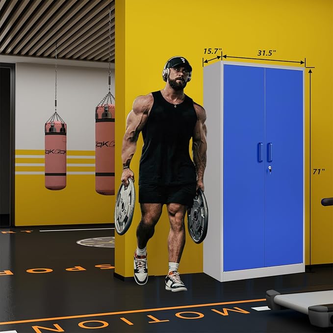 STANI Metal Garage Storage Cabinet with Lock, 71" Steel Lockable File Cabinet, Locking Steel Storage Cabinet with 5 Adjustable Shelves for Home, Office, Garage, Warehouse (Blue Grey, 2 Door - 71" H)