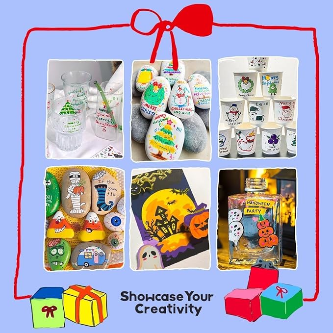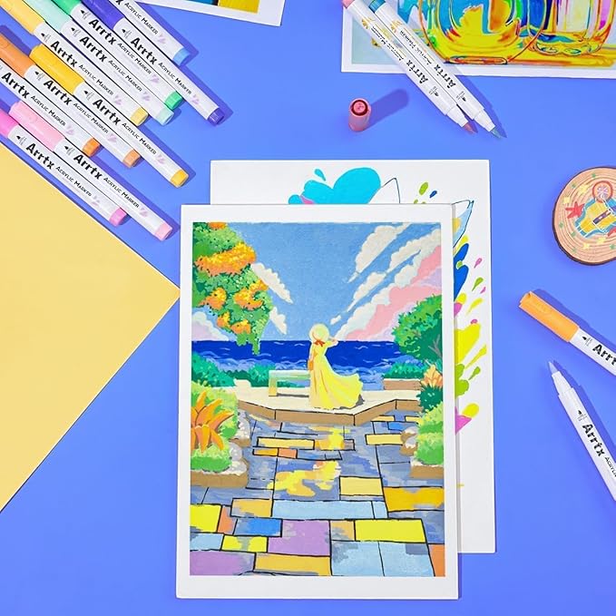 - Suitable for Multiple Surfaces: Arrtx acrylic markers set provides water-based smooth ink and excellent coverage for a variety of surfaces, works for paper, cardstock, metal, rock painting, wood, plastic, canvas, fabric, stone, Easter eggs, easter decoration, metal, Christmas ornament, Halloween pumpkin painting, calligraphy, scrapbook, brush lettering, Christmas card, birthday gifts, greeting card, or any DIY crafts projects and more. Let's express imagination!