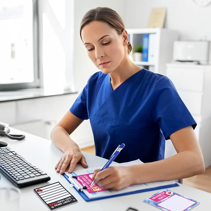 Geyee 24 Pcs Fun Nurse Sticky Notes with Funny Pens Fun Notepads for Adults Coworkers Nurse 3 x 4 Inch to Do List Notepads with Sayings Pen for Lab Week Gifts Teacher Office Supplies