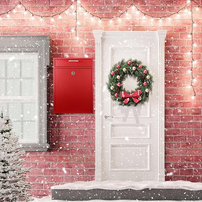 Locking Mailbox with Key for Outdoor 16.2 x 11.2 x 4.7 Inches Large Wall Mount Mail Box with Lock Security Mail Drop Metal Collection Boxes Hanging Secure Postbox(Red)