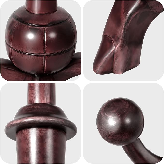 - 【Premium Material】: This coat tree rack is made from high-quality rubber wood logs, and does not contain artificial synthetic boards. The wood material exhibits an attractive grain that makes it a lovely addition to any home
