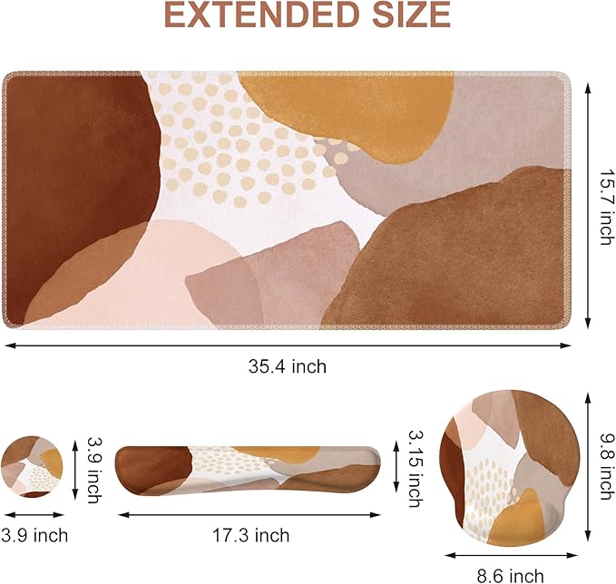 - Large Mouse Pad Size: Extended mouse pad:35.4" x 15.7",wrist rest for computer keyboard:17.32" x 3.15" x 0.98",wrist rest for mouse:8.66" x 9.84" x 0.86",Coaster:3.93" x 3.93"