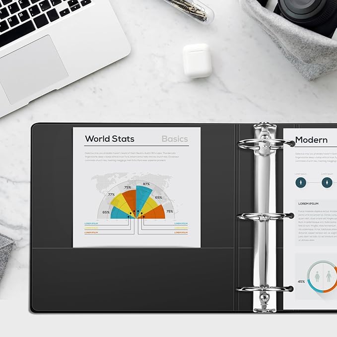 - Multipocket:3 ring binder with 2 interior pockets for storing business cards, sticky note and memo papers.