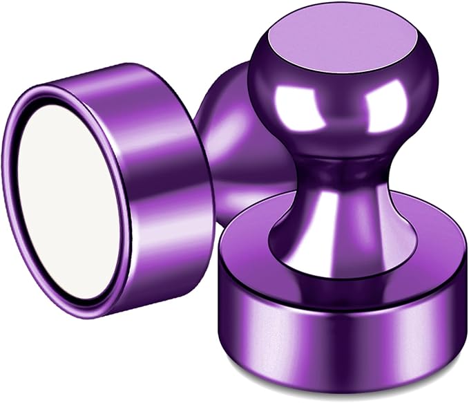 - 【HIGH QUALITY】:Fridge magnet is plated with 3 layers of protective coating- purple paint + nickel + copper, which greatly protects push pins magnets from corrosion and is sturable.