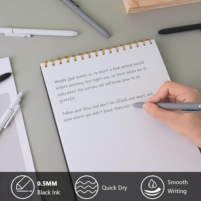 - Package Included:These pen sets included 6pcs black ink pens.Whether you're at school, the office, or at home, our gel pens are ideal for all your writing needs, from taking notes, and filling out forms, to doodling, planning, and journaling, making them versatile and suitable for various tasks and projects