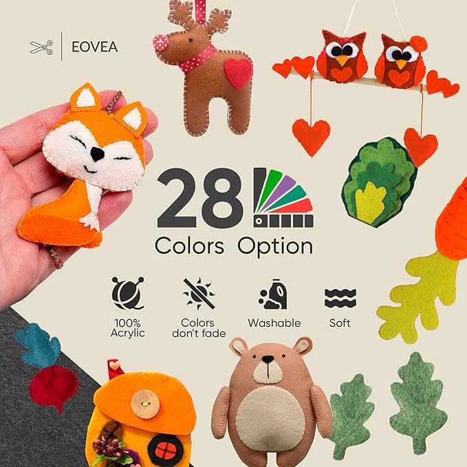 - Eovea top-tier thick felt fabric is 100% acrylic, ensuring remarkable durability, and offers a wide 72-inch width for your crafting needs. The durable thick craft felt fabric material ensures stability for items like poker cards and puzzle pieces. If you need more lengthy continuous yards of this acrylic felt fabric by the yard, please contact us.