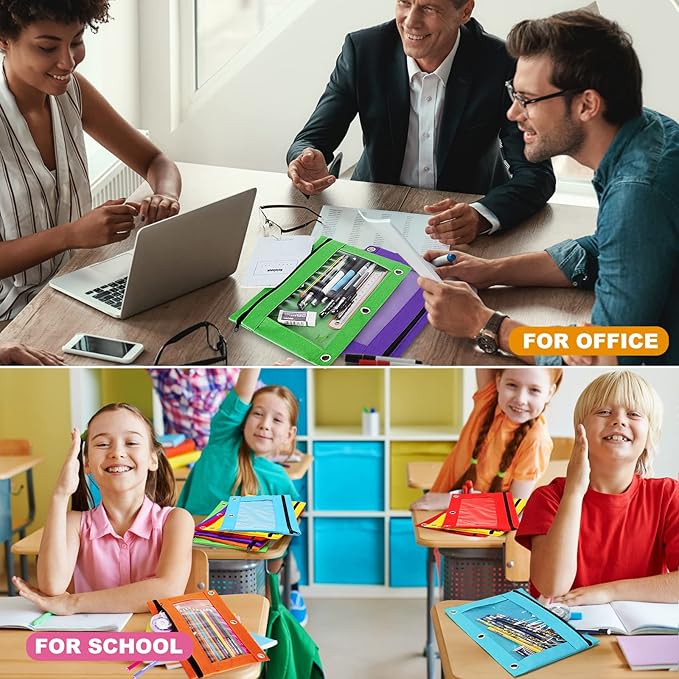 - Apposite Size: Each 3 ring binder pouch is 9.8 inches x 7.1 inches, the zippered pencil bags have 3 copper holes (The distance between the holes is 4.3 inches), suitable for the standard 3 ring binders, can be placed in folders. Available in bulk back to school and office supplies to save your costs.