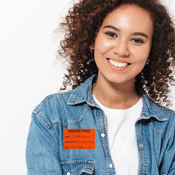 Red Visitor Pass / 500 Fluorescent Red Visitor Identification Stickers / 2" x 3" Rectangle Guest Label Badges/Made in The USA