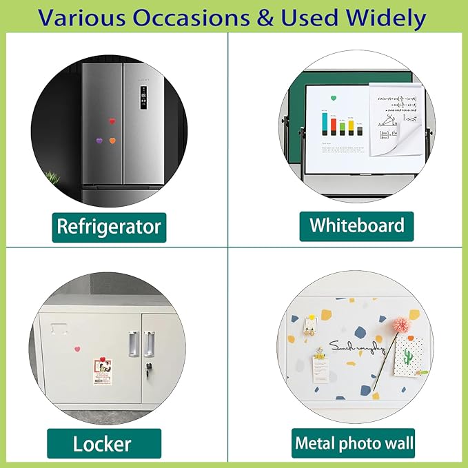 - 【Small strong magnets】This locker magnets has a larger magnetic contact area, holds better and more durable than other magnets fridge. Thanks to their strong adhesion, these super strong magnet provide a secure and reliable hold on any metal surface. These craft magnets are flexible, waterproof and easy to carry and remove. These cute fridge magnets easily hold multiple photos and papers in place. If you wish to hang a heavier object, please make sure you use 2+ white board magnets set