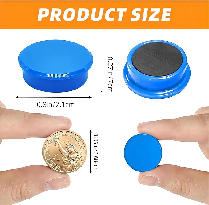 - Circle Magnets, Compact Size, Heavy Duty Grip:These strong fridge magnets are compact but enough to hold multiple sheets of paper or lightweight objects, making them ideal as refrigerator magnets or locker magnets for adults and teens.