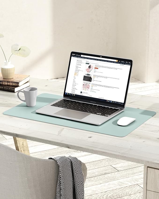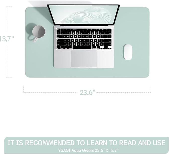 YSAGi Non-Slip Leather Desk Pad, Waterproof Laptop Computer Desk Keyboard Mat, Table Protector Blotter Mat, Large Mouse Pad for Office/Work/Home/Decor(Mint Green, 23.6" x 13.7")