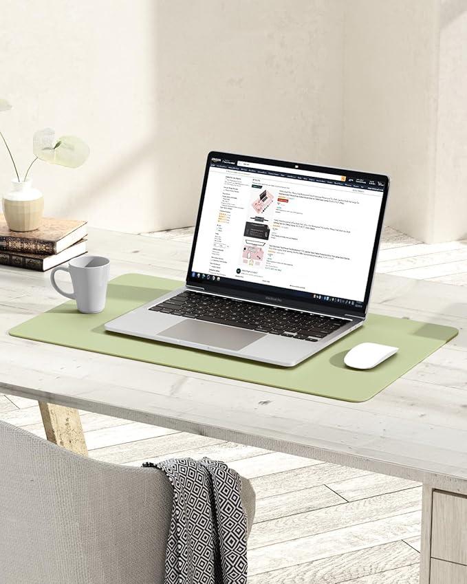 YSAGi Non-Slip Leather Desk Pad, Waterproof Laptop Computer Desk Keyboard Mat, Table Protector Blotter Mat, Large Mouse Pad for Office/Work/Home/Decor(Matcha Green, 23.6" x 13.7")
