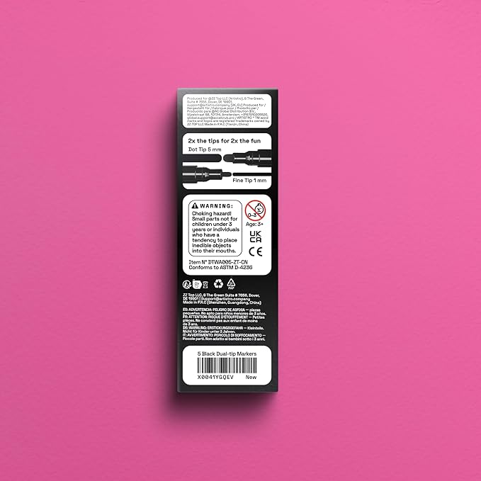 ARTISTRO 5 Black Dual-Tip Acrylic Paint Pens for Rock, Ceramic, Glass, Wood, Fabric - Black Markers for Acrylic Painting, 5mm Dot + 1mm Fine Tips