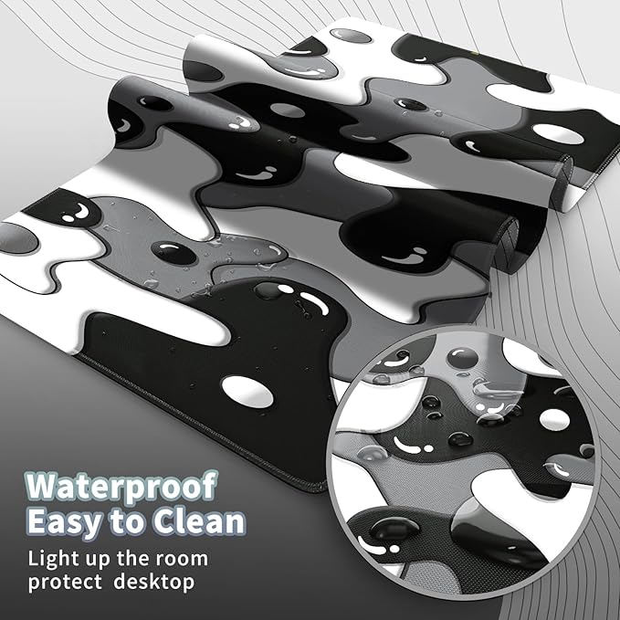 - ❤ SUPERIOR CONTROL SURFACE – Black White Grey Desk Mat designed with Superfine Fiber Braided Material, the breathable Lycra surface will provide smooth mouse control and pinpoint accuracy. Optimized for fast movement while maintaining excellent speed and control during your work or game. Non-slip rubber bottom provides strong grips between mat and desktops, further providing a stable control.