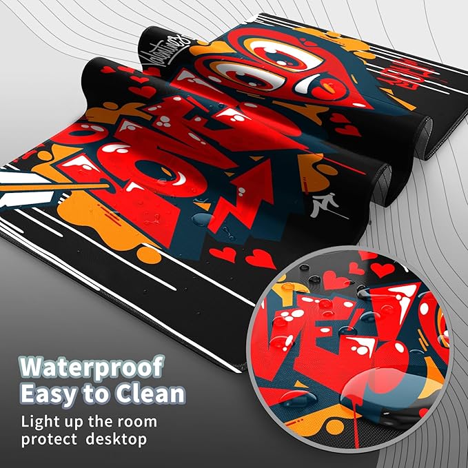 Gaming Mouse Pad, Keyboard Mouse Pad 31.5x15.7 inch XXL Large Computer Laptop Cool Desk Mat with Non-Slip Rubber Base and Stitched Edge for Home Office Work, Black Love Graffiti