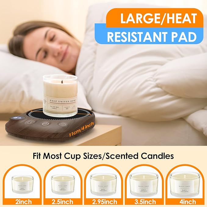 - 【Enjoy Longer Candle Fragrance】2-in-1 coffee and candle Warmer, not only keeps your coffee at the perfect temperature, but also melts your scented candles evenly from the bottom up, releasing a long-lasting fragrance. The larger candle warmer heating plate ensures slow, consistent melting for a fuller, more enjoyable aromatic experience