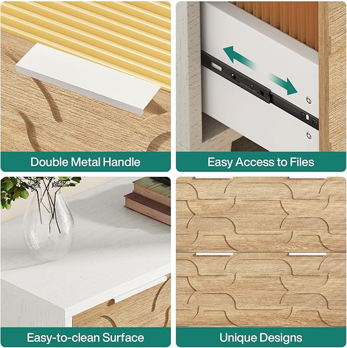 - Spacious Storage: Experience the convenience of a well-organized workspace with our spacious lateral file cabinet. The drawers slide smoothly on rails, allowing easy access to your documents. The sturdy desktop can accommodate your printer, scanner, or other office supplies, simplifying your workspace and increasing productivity.