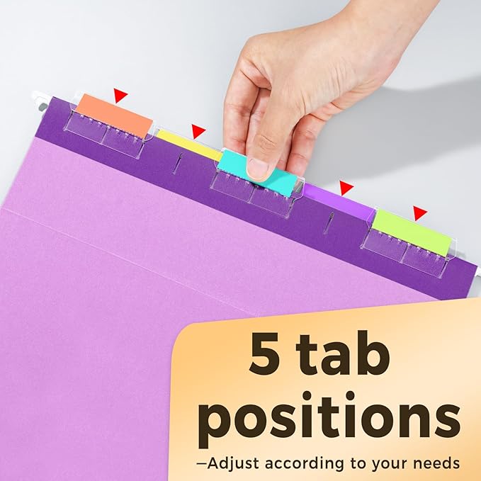 - With 1/5-cut Tabs: Include 25 pack 1/5-cut adjustable tabs and two sheets of blank label inserts. You can customize your file names on blank labels to help you mark and categorize your documents efficiently.