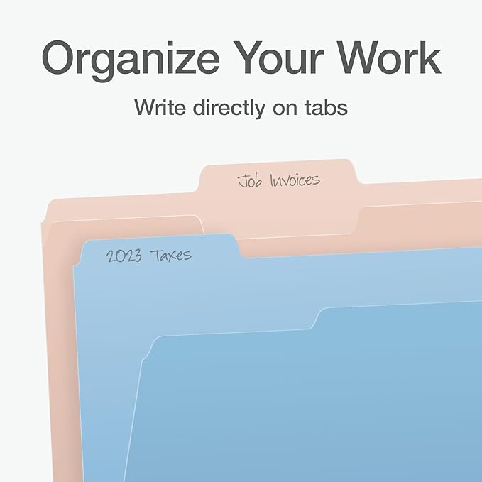 - Letter size folders fit neatly inside hanging file folders and have roomy 1/3-cut tabs in assorted positions, so it's easy to label folders and sort files by category, date, or priority
