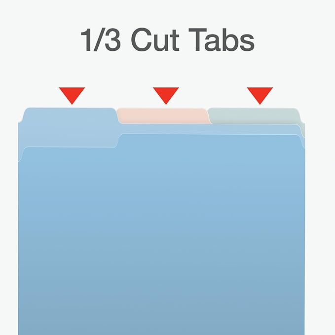 - 1/3 cut file folders come with tabs in 3 different positions, so you can label your folders and find things quickly in a filer drawer or file box