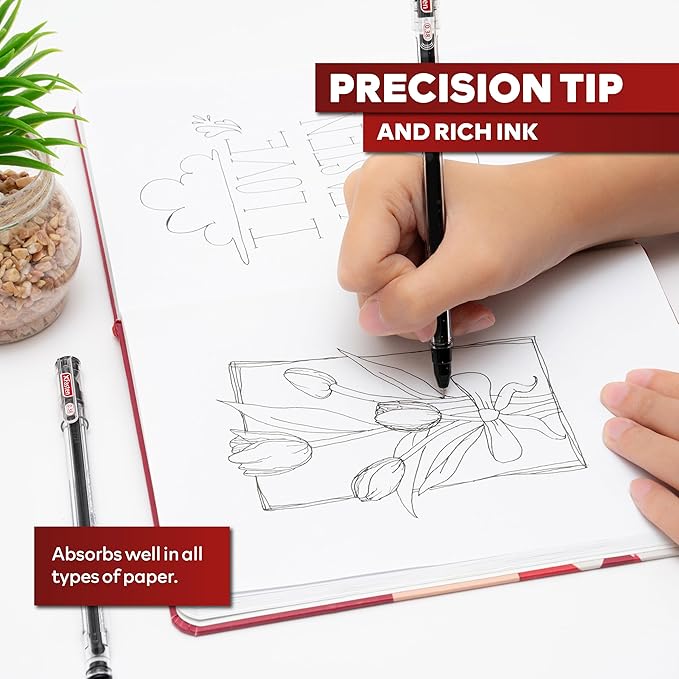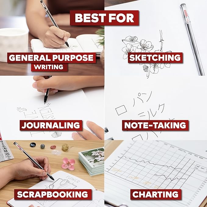 - Durable, Long-Lasting Ink Supply – Each 0.38mm pen features a high-capacity ink reservoir for prolonged use, making these pens perfect for heavy writing tasks, school projects, office use, journals, and scrapbooks.