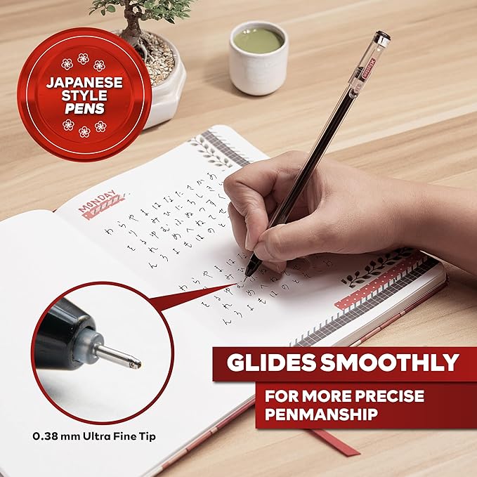 - Smooth Precise Writing – 0.38mm Japanese-style gel pens deliver clean, precise lines for bullet journaling, note-taking, and sketching. Perfect for professionals and students, these pens ensure smooth ink flow and tactile writing without scratchiness.