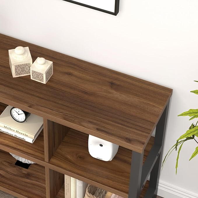 - Modern Bookcase: With its rustic walnut wood grain finish and black metal frames, this 6-cube storage organizer seamlessly blends modern and industrial styles. The fusion of decor and functionality makes this industrial bookshelf a versatile addition to any space.